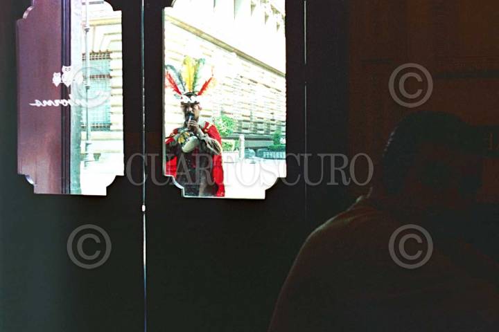 Un conchero toca la flauta afuera de un restaurant en la calle 5 de Mayo del centro histórico, para tratar de conseguir unas cuantas monedas. FOTO: Eunice Adorno/CUARTOSCURO.COM