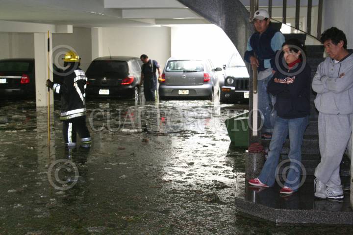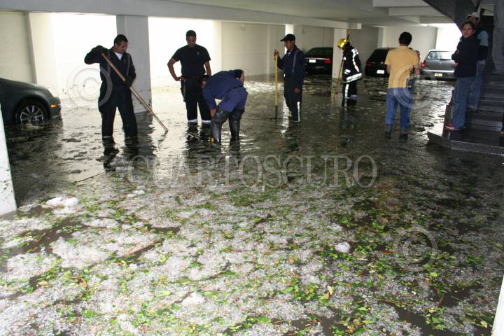 MÈXICO, D.F. 3AGOSTO2006.- La tromba que cayò en la ciudad afectò varios inmuebles, estacionamientos y desniveles quedaron cubiertos por el granizo y el agua. FOTO: Paola Hidalgo/CUARTOSCURO.COM