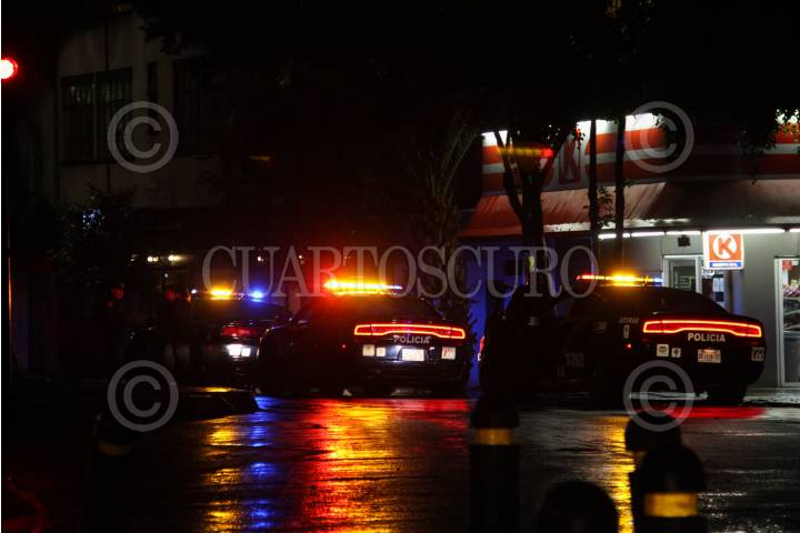 MÉXICO, D.F., 05JULIO2015.- Con un despliegue de más de 10 patrullas, la Secretaria de Seguridad Pública realiza un operativo por la Colonia Condesa, tras el homicidio de Marco Antonio Cardona Utrilla, de 45 años quien era dueño del bar Life y también poseía un negocio de computadoras. FOTO: ISABEL MATEOS /CUARTOSCURO.COM