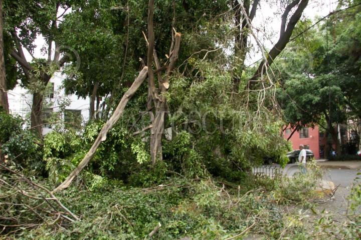 CIUDAD DE MÉXICO, 03MAYO2019.- Un árbol, cayó debido al paso de un camión de carga pesada, no se reportaron lesionados en Av. Mazatlán de la Colonia Condesa. FOTO: ROGELIO MORALES /CUARTOSCURO.COM