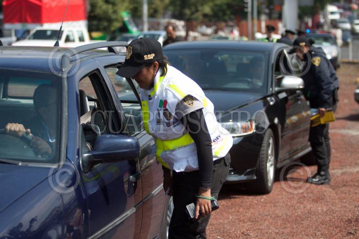 MÉXICO, D.F., 07JULIO2012.- La Secretaría de Seguridad Pública del DF implemento el programa "Conduce sin Alcohol Carretero" por las vacaciones de verano en la salida a Cuernavaca a la altura del monumento al Caminero. El titular de la dependencia Manuel Mondragón y Kalb informó que se instalarán los llamados alcoholímetros en cinco puntos revisión del 07 al 15 de julio con un horario de 10:00 a 18:00. El dispositivo se implementará en las salidas a Cuernavaca, Puebla, Querétaro y Toluca. FOTO: MOISÉS PABLO /CUARTOSCURO.COM