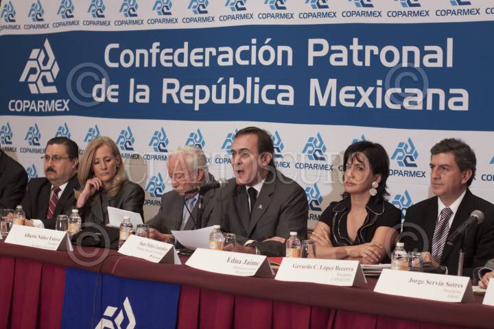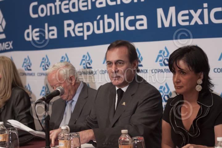 MÉXICO, D.F., 15OCTUBRE2013.- Juan Pablo Castañon, presidente de la Confederación Patronal de la República Mexicana, y Alberto Nuñez Esteva presidente de Sociedad en México, en compañía de varios integrantes de cámaras de comercio del país, ofrecieron una conferencia de prensa en la cual señalan que los empresarios mexicanos dicen no a la Reforma Hacendaría propuesta por Jefe del Ejecutivo, al menos no como esta planteada ya que para ellos eso no se trata de una reforma, se trata de una miscelánea fiscal. FOTO: MOISÉS PABLO /CUARTOSCURO.COM