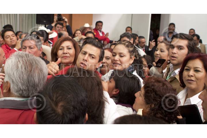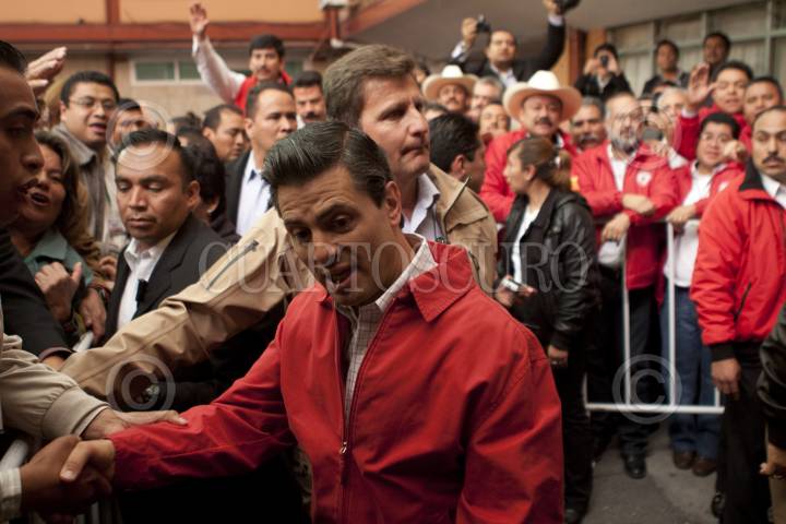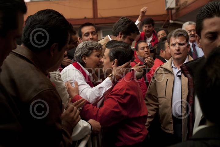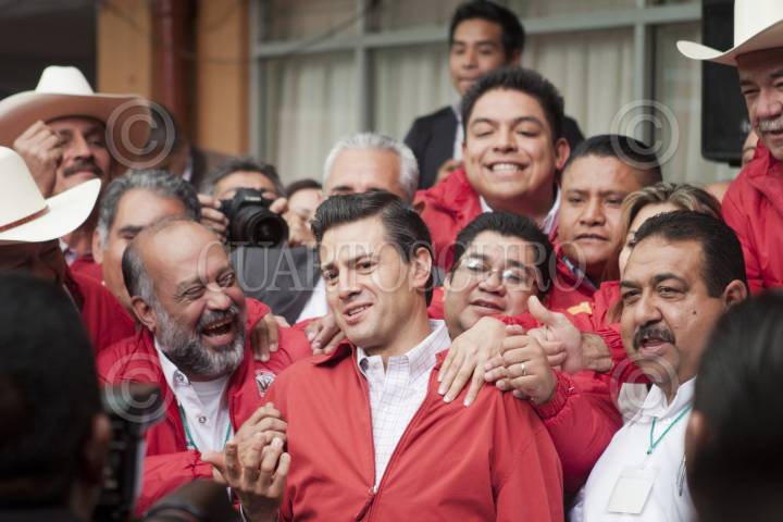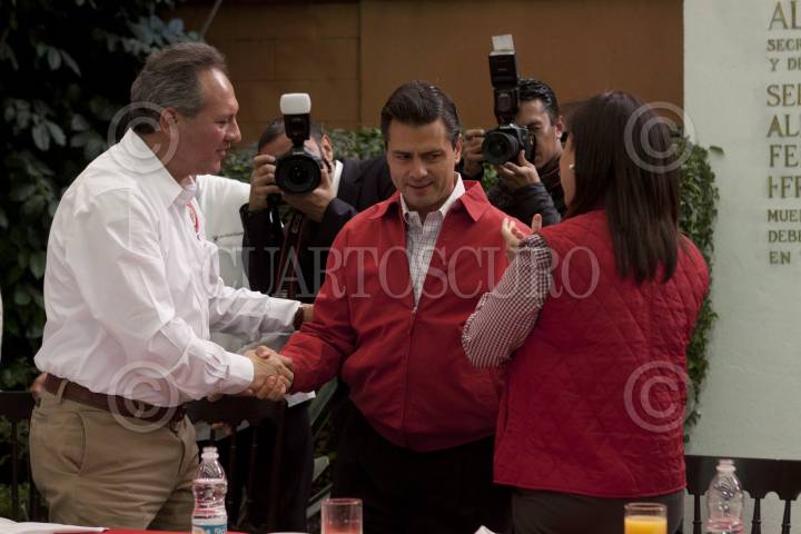 MÉXICO, D.F., 21DICIEMBRE2011.- Enrique Peña Nieto, candidato a la presidencia de México por el Partido Revolucionario Institucional (PRI), desayunó con el sector campesino tricolor en las oficinas de la Confederación Nacional Campesina. FOTO: MOISÉS PABLO/CUARTOSCURO.COM