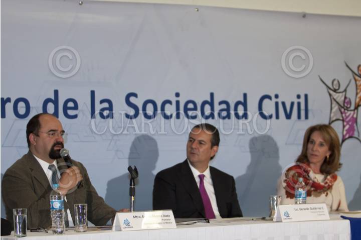 MÉXICO, D.F., 11ENERO2012.- Emilio Alvarez Icaza, Gerardo Gutiérrez Candiani, presidente nacional de la confederación Patronal de la República Mexicana (Coparmex) y María Elena Morera, presidenta de Causa en Común durante el panel Construcción de la Ciudadanía que se realizo como parte del Encuentro de la Sociedad Civil que realiza la Coparmex en el World Trade Center. FOTO: RODOLFO ANGULO/CUARTOSCURO.COM
