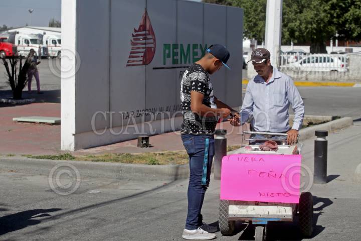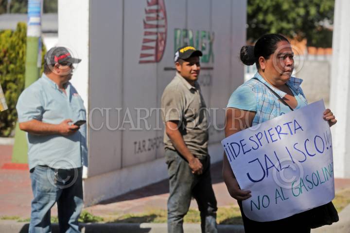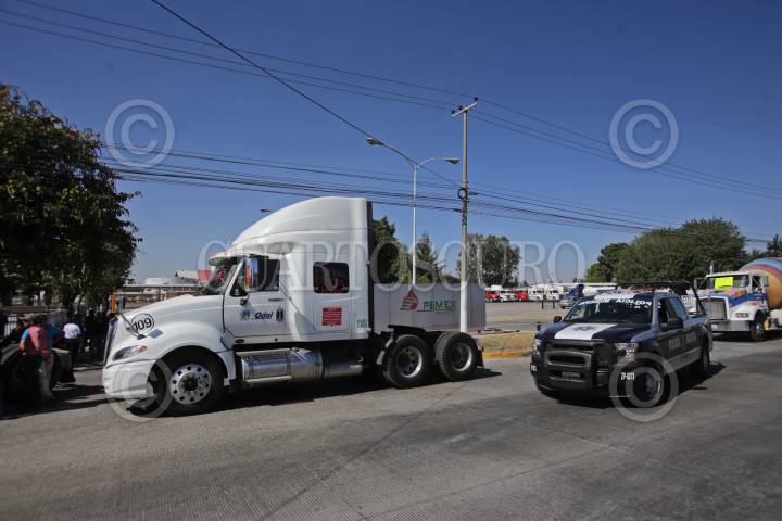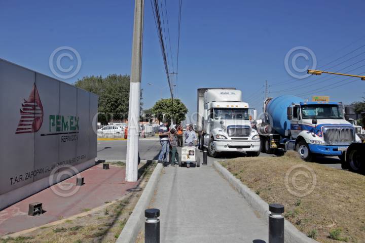 ZAPOPAN, JALISCO. 04ENERO2017.- Decenas de transportistas de la Confederación Nacional de Transportistas CONATRAM, se manifestaron a las afueras de la Planta de Refinación de Pemex ubicada en ya dicho municipio y bloquearon la entrada a la misma, esto en repudio por la decisión del presidente de la republica, Enrique Peña Nieto, en el elevar el precio de los combustibles como parte de la Reforma Energética. FOTO: FERNANDO CARRANZA GARCIA / CUARTOSCURO.COM
