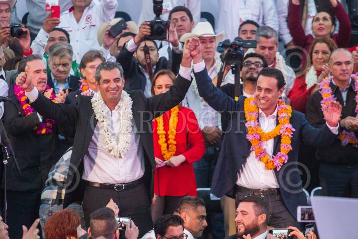 CIUDAD DE MÉXICO, 15NOVIEMBRE2017.- Ismael Hernández Deras rindió protesta como líder de la Confederación Nacional Campesina, ante Enrique Ochoa Reza, líder nacional del PRI. FOTO: ISAAC ESQUIVEL /CUARTOSCURO.COM