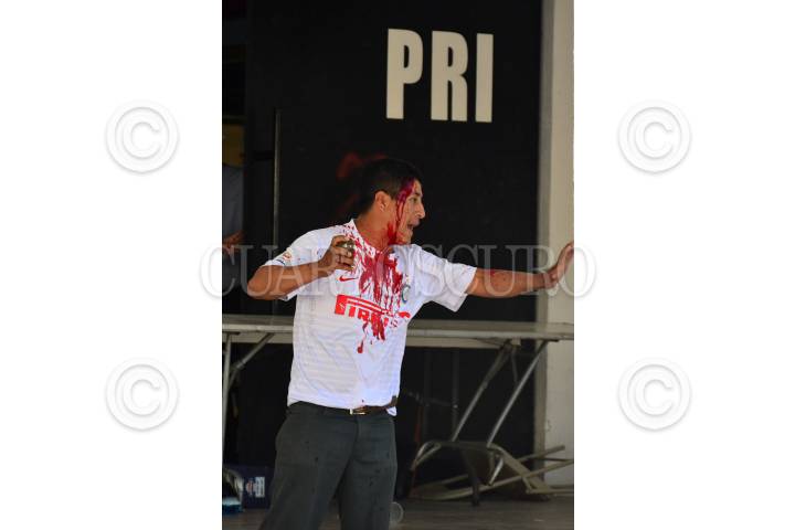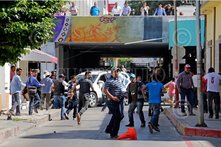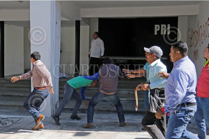 TUXTLA GUTIERREZ, CHIAPAS, 27NOVIEMBRE2017.- Habitantes de Bochil que habian tomado las instalaciones del PRI exigiendo carcel para el alcalde y excalde de dicho municipio, fueron enfrentados por un grupo de simpatizantes de la Confederación Nacional Campesina (CNC). FOTO. JACOB GARCÍA /CUARTOSCURO.COM