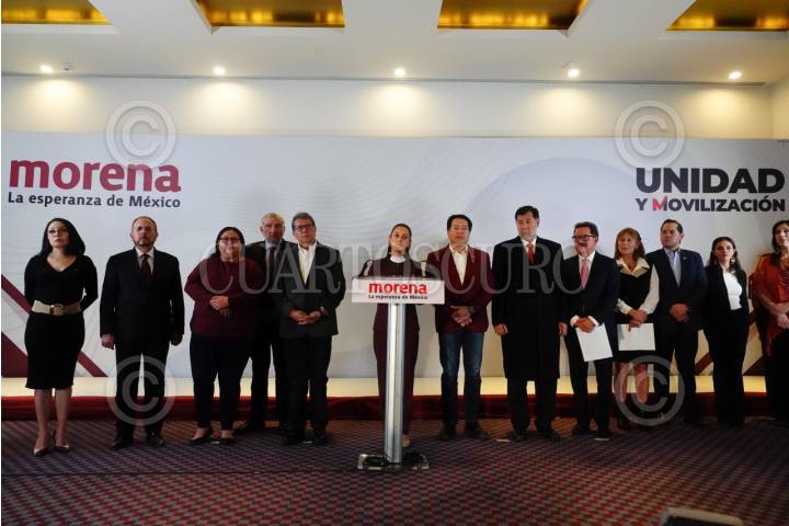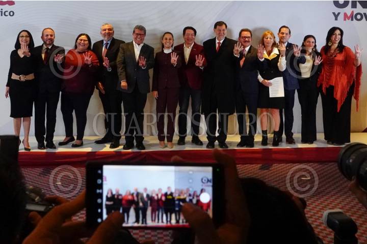 CIUDAD DE MÉXICO, 06FEBRERO2024.- Claudia Sheinbaum, precandidata candidata a la presidencia por la coalición "Sigamos Haciendo Historia" encabezó la conferencia a medios en donde detalló que se respaldarán las 18 reformas constitucionales así como el arranque de la campaña el 1 de marzo en el Zócalo de la Ciudad de México. FOTOS: ROGELIO MORALES /CUARTOSCURO.COM