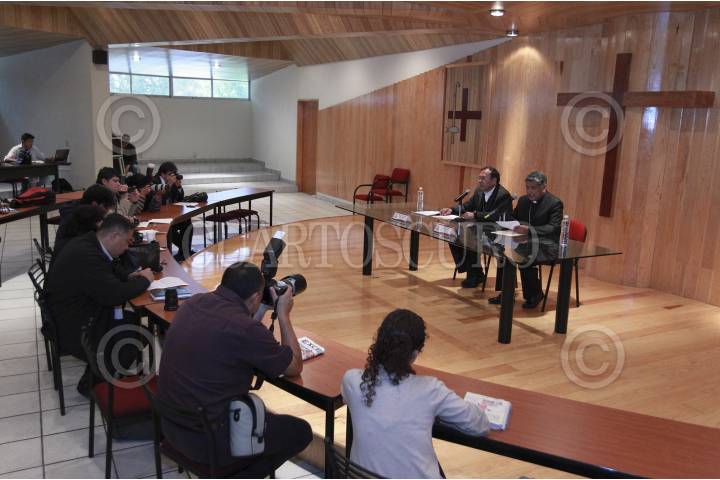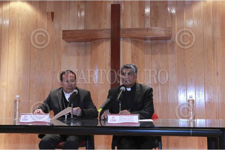 CUATITLÁN IZCALLI, ESTADO DE MÉXICO, 13NOVIEMBRE2012.- El Obispo de Tepic, Mons. Luis Artemio Flores Calzada, y el secretario general de la CEM, y Obispo del Valle de Chalco, Mons. Víctor René Rodríguez Gómez, ofrecieron una conferencia de prensa por la XCIV Asamblea Plenaria de la Conferencia del Episcopado Mexicano. FOTO: IVÁN MENDEZ /CUARTOSCURO.COM