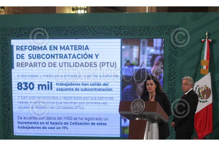Andrés Manuel López Obrador y Luisa María Alcalde, durante su participación en la conferencia matutina.