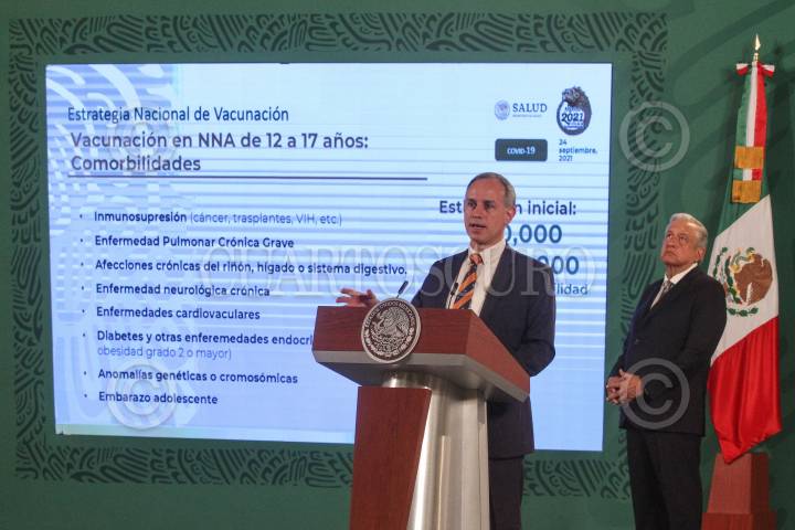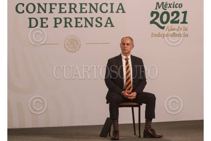 Hugo López-Gatell y Andrés Manuel López Obrador, durante la conferencia mañanera.