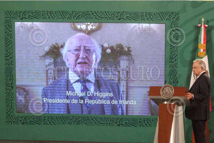Andrés Manuel López Obrador durante mensaje del presidente de Irlanda.