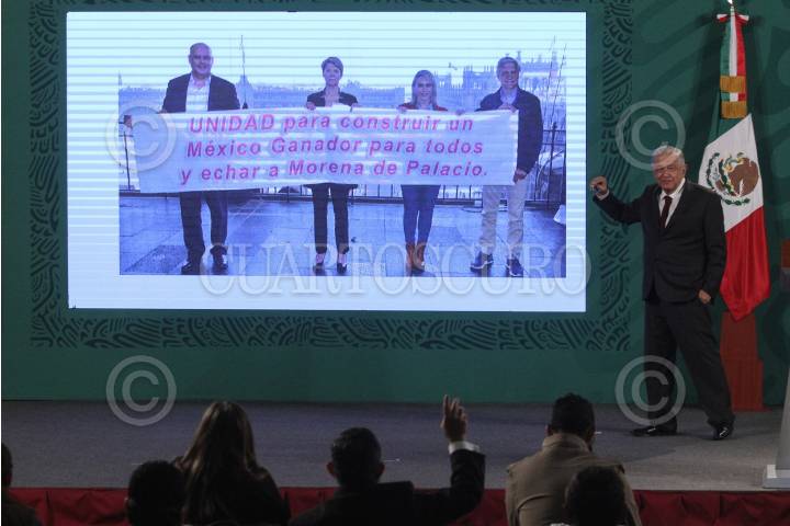Aspectos de la a conferencia matutina en Palacio Nacional.
