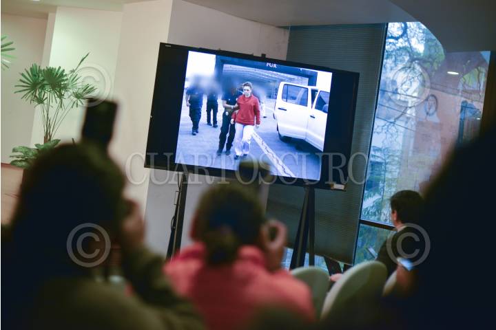 MÉXICO, D.F., 05ENERO2015.- Imágenes mostradas del traslado al Cefereso de Tepic, Nayarit, de María de los Ángeles Pineda, esposa del ex alcalde de Iguala José Luis AbarcaTomás Zerón. En conferencia de prensa Tomás Zerón, director de la Agencia Criminal de la PGR, informó que el pasado 29 de diciembre, se logró la detención de 10 policías municipales de Iguala, Guerrero acusados de delincuencia organizada y secuestro, señalados por la desaparición de los 43 normalistas de Ayotzinapa. FOTO: ADOLFO VLADIMIR /CURTOSCURO.COM