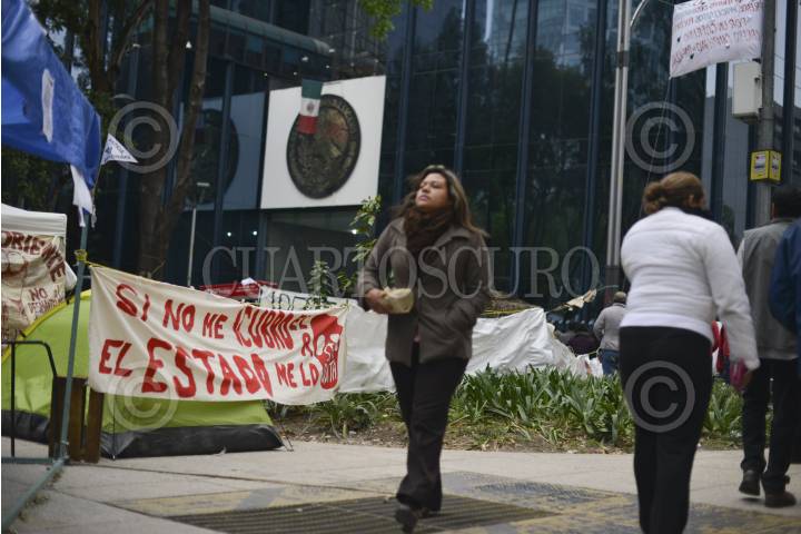 MÉXICO, D.F., 05ENERO2015.- Padres y compañeros de los estudiantes normalistas desaparecidos el pasado 26 de septiembre del 2014, mantienen el plantón en las inmediaciones de la Procuraduría General de la República, exigiendo se presenten con vida los 43 normalistas. FOTO: ADOLFO VLADIMIR /CUARTOSCURO.COM