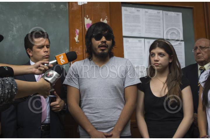 MÉXICO, D.F., 29NOVIEMBRE2012.- Estudiantes orozquistas integrates de la organización estudiantil la RED, se manifiestan a las afueras del Museo de la Ciudad de México, durante el intento de la instalación del 3er Consejo Universitario de la UACM. Hasta las 20:00 hrs no había acuerdo entre los consejeros; los estudiantes cercanos a la rectora no firmaban la lista de asistencia que implicaba el cuorum para la instalación. FOTO: ADOLFO VLADIMIR /CUARTOSCURO.COM