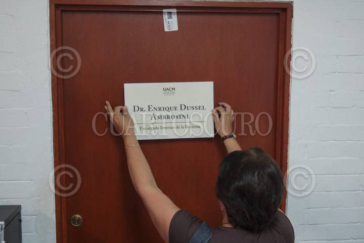 MÉXICO, D.F., 11MARZO2013.- El Consejo Estudiantil de Lucha (CEL) de la UACM, entregó las oficinas de la Rectoría ubicadas en el plantel del Valle que desde el 28 de agosto estaban bajo su resguardo. Carlos González secretario Técnico del CU recibió por parte de un representante del CEL las oficinas y este a su vez le hizo entrega a el encargado interino de rectoría Dr. Enrique Dussel. FOTO: MARIO MARLO /CUARTOSCURO.COM