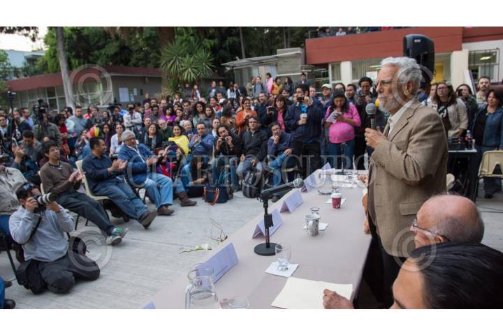 MÉXICO, D.F., 13MARZO2013.- La comisión tripartita, que se encarga de resolver el conflicto en la Universidad Autónoma de la Ciudad de México (UACM) reconoció a Enrique Dussel como Rector interino de esta universidad. Por la tarde el Rector realizó una conferencia de prensa en el Plantel del Valle. FOTO: MARIO MARLO /CUARTOSCURO.COM