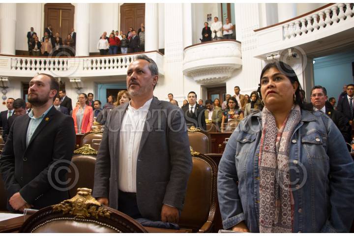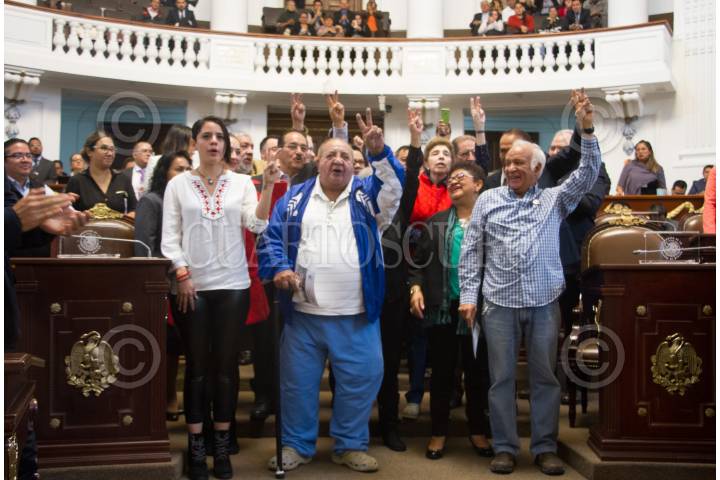 CIUDAD DE MÉXICO, 02OCTUBRE2018.- El congreso Constituyente de la Ciudad de Méxco, realizó sesión solemne en conmemoración de la Masacre de estudiantes en la Plaza de las Tres Culturas en 1968. Bancadas de todos los partidos políticos, en tribuna fijaron su posición, recibieron a los representantes del Comité del 68 que con Huelums y Goyas entraron al recinto. FOTO: VICTORIA VALTIERRA / CUARTOSCURO.COM