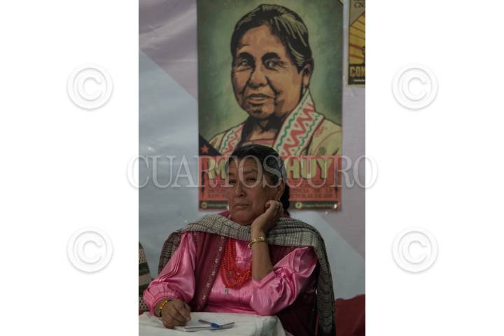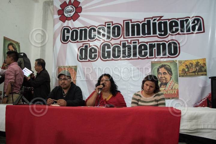 CIUDAD DE MÉXICO, 15FEBRERO2018.- Juan Bobadilla, Maria Macario Salvador, concejales Purepechas, Maricela Mejíca Pérez, concejal Nahua, Magdalena Duran, concejal Mazahua, durante la conferencia de prensa en la cual el Concejo Indígena de Gobierno habló sobre el reciente accidente automovilístico de la caravana de Concejo y su vocera Marichuy en el estado de Baja California. FOTO: ADOLFO VLADIMIR /CUARTOSCURO.COM