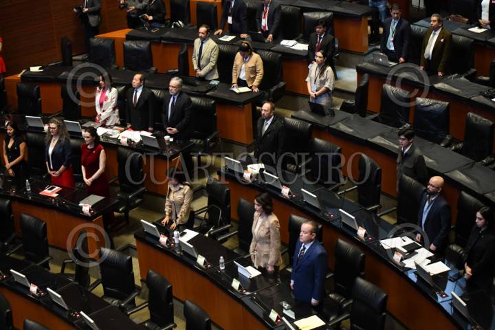CIUDAD DE MÉXICO, 03JULIO2025.- Legisladores durante el minuto de silencio en memoria de Violeta Barrios de Chamorro quien fue la primer mujer elegida presidenta de la República de Nicaragua, otorgado en la sesión de la Comisión Permanente en la que se realizaron la presentación de iniciativas por parte de los grupos parlamentarios. FOTO: MARIO JASSO/CUARTOSCURO.COM