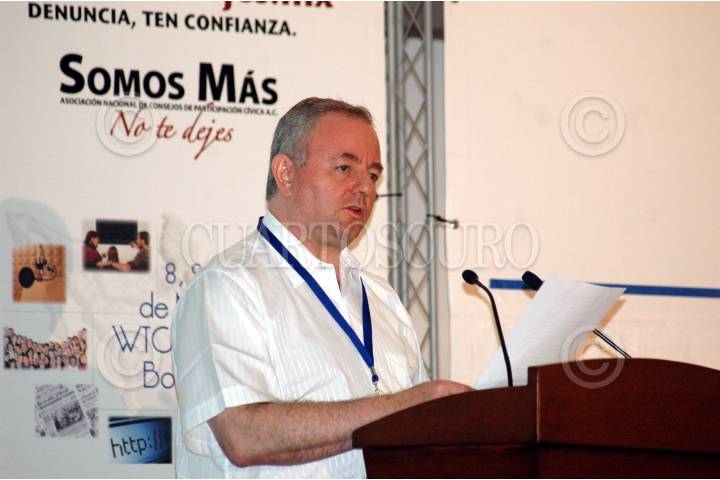 BOCA DEL RIO, VERACRUZ. 09NOVIEMBRE 2009.- Carlos Marín Martínez, periodista durante su ponencia "Percepción social de la seguridad en México" dentro del Congreso nacional "Ciudadanía y medios acción conjunta" que se llevó acabo durante en las instalaciones del WTC de esta ciudad. FOTO: JOSÉ CANDELARIO/CUARTOSCURO.COM