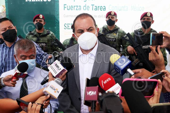 Cuauhtémoc Blanco, gobernador de Morelos, atiende a la prensa local al finalizar un evento en la zona militar de la capital.