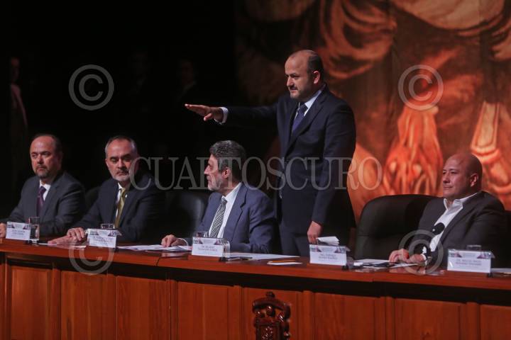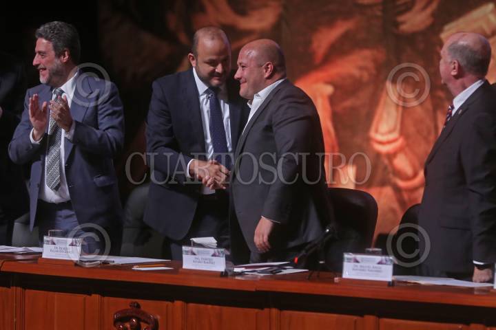 ZAPOPAN, JALISCO, 01ABRIL2019.- Ricardo Villanueva durante la toma de protesta como nuevo Rector de la Universidad de Guadalajara en evento que se llevo a cabo en el Conjunto de Artes Escénicas de ya mencionada casa universitaria, a la ceremonia acudieron el Gobernador del estado Enrique Alfaro Ramírez así como personalidades de la entidad y académicos. FOTO: FERNANDO CARRANZA GARCIA / CUARTOSCURO.COM