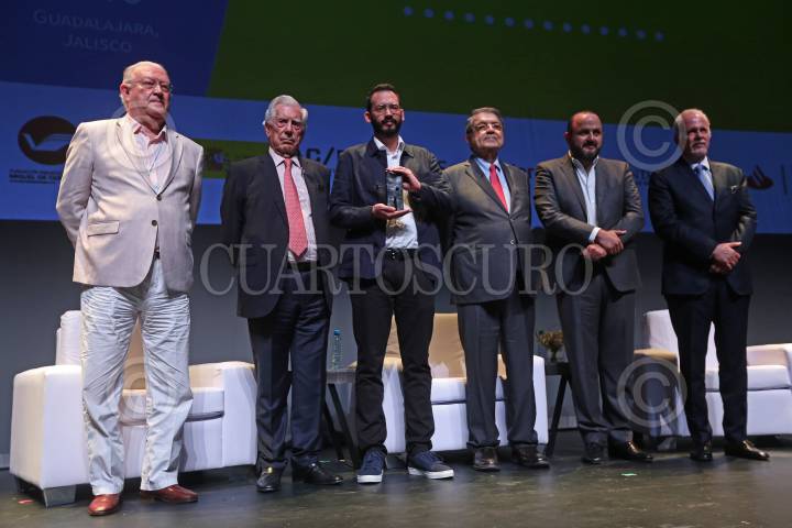 ZAPOPAN, JALISCO, 27MAYO2019.- Esta noche en el Conjunto de Artes Escénicas (CAE) de la Universidad de Guadalajara (U. De G.), se llevo a cabo la Ceremonia de Inauguración y Conversación entre los cinco finalistas del III Premio Bienal de Novela Mario Vargas Llosa, Gioconda Belli, Rodrigo Blanco Calderón, Gustavo Faverón, Antonio Soler y Manuel Vilas, misma en la que estuvo presente el protagonista y escritor Peruano. FOTO: FERNANDO CARRANZA GARCIA / CUARTOSCURO.COM