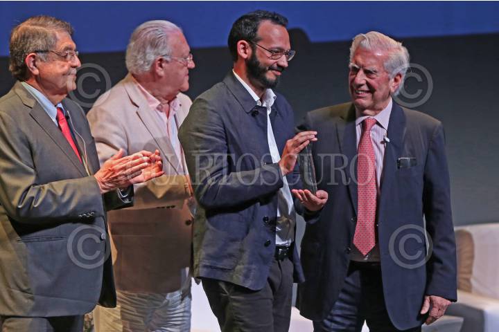 ZAPOPAN, JALISCO, 30MAYO2019.- Esta noche en el Conjunto de Artes Escénicas (CAE) de la Universidad de Guadalajara (U. De G.), se llevo a cabo un Dialogo de Sergio Ramírez con Mario Vargas Llosa, al termino de este se hizo entrega del Premio de la III Bienal de Novela Mario Vargas Llosa al escritor Venezolano Rodrigo Blanco Calderón, con lo que se dio por clausurado dicho encuentro. FOTO: FERNANDO CARRANZA GARCIA / CUARTOSCURO.COM
