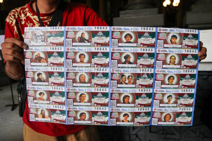 CIUDAD DE MÉXICO. 06AGOSTO2025.- En el Munal del Centro histórico de la ciudad, se presentaron los billetes de lotería conmemorativos a "Mujeres que han transformado nuestra patria". Asistieron Olivia Salomón, Angélica Juárez entre otros FOTO: VICTORIA VALTIERRA/CUARTOSCURO.COM