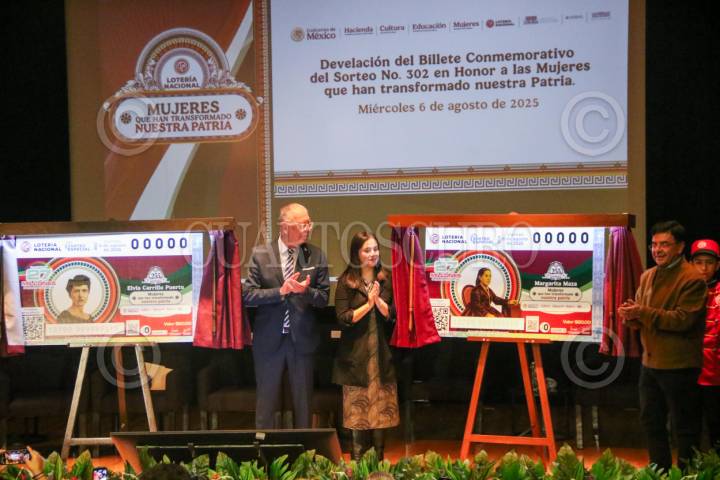 CIUDAD DE MÉXICO. 06AGOSTO2025.- En el Munal del Centro histórico de la ciudad, se presentaron los billetes de lotería conmemorativos a "Mujeres que han transformado nuestra patria". Asistieron Olivia Salomón, Citlali Hernández, Angélica Juárez y Jesús Ramírez Cuevas. FOTO: VICTORIA VALTIERRA/CUARTOSCURO.COM