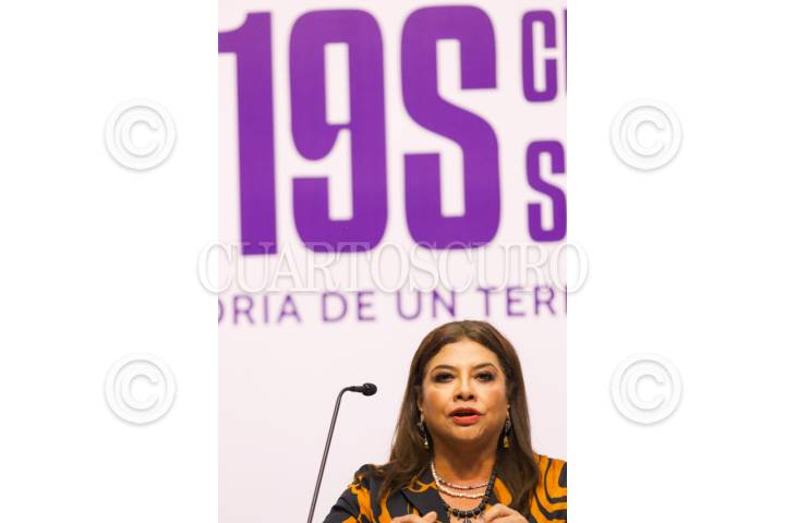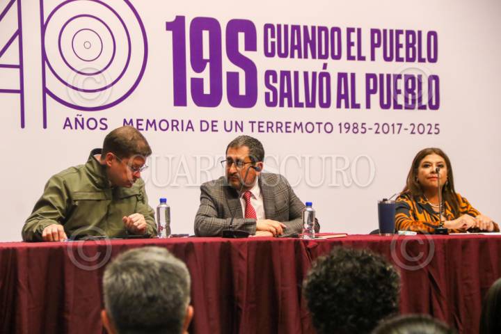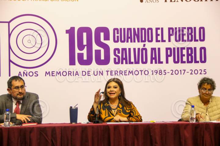 CIUDAD DE MÉXICO. 29AGOSTO2025.- La jefa del Gobierno de la ciudad, Clara Brugada Molina, acompañada de su gabinete hablo sobre asuntos de la Ciudad y sobre la conmoracion de los 40 años del sismo en la Capital Mexicana. FOTO: VICTORIA VALTIERRA/CUARTOSCURO.COM