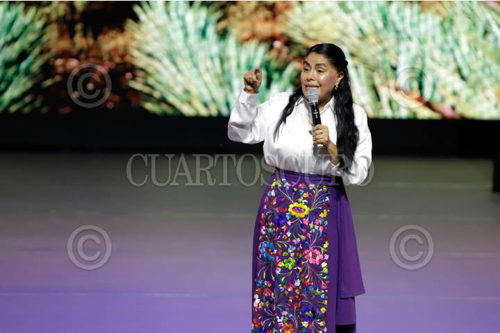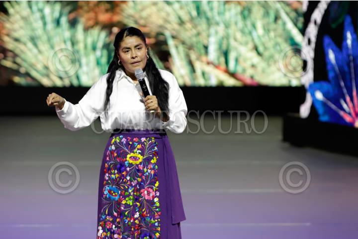La diputada Eufrosina Cruz durante su conferencia en el marco de la edición 2023 del Festival de las Ideas en Puebla.