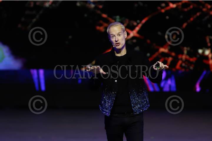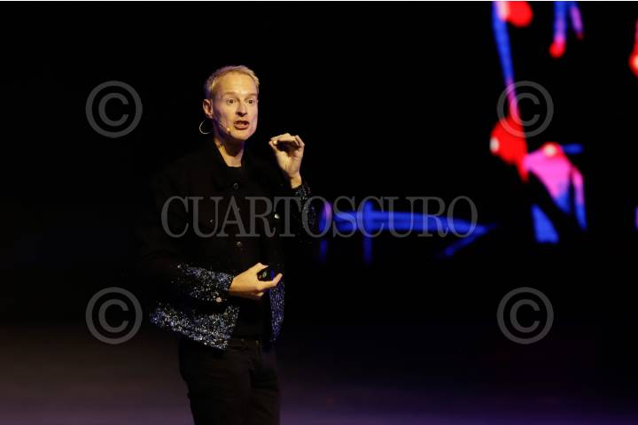 El artista Daan Roosegaarde durante su conferencia en el marco de la edición 2023 del Festival de las Ideas en Puebla.