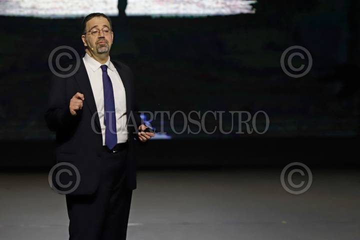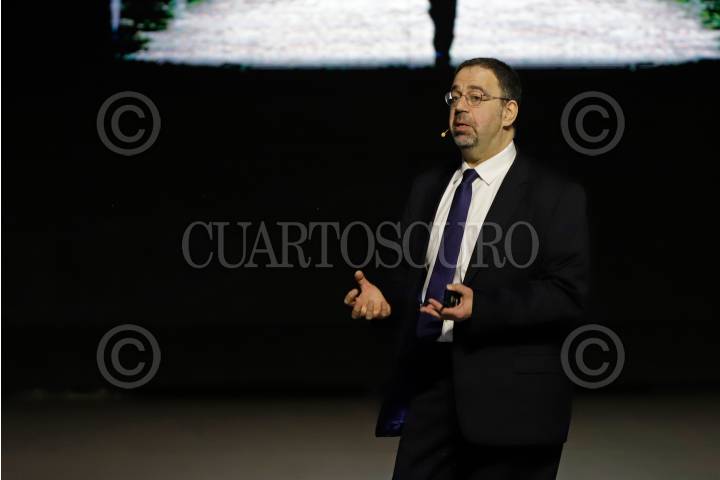 El economista Darón Acemoglu durante su conferencia en la edición 2023 del Festival de las Ideas en Puebla
