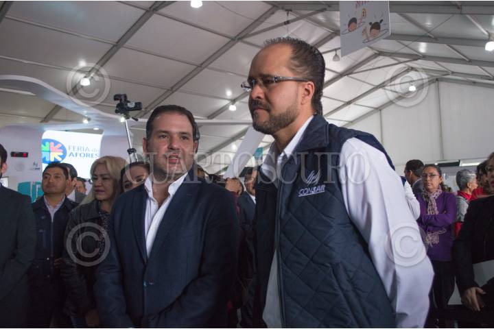 CIUDAD DE MÉXICO, 29JUNIO2017.- Christian Damián von Roehrich, jefe delegacional de Benito Juárez y Carlos Ramírez Fuentes, presidente de la Comisión Nacional del Sistema de Ahorro para el Retiro, CONSAR, inauguraron la cuarta feria de las Afores, evento que asesorará a cientos de trabajadores sobre su ahorro para el retiro. La feria podrá visitarse hasta el próximo domingo 2 de julio, en la explanada de la delegación Benito Juárez, y habrá actividades como pláticas informativas sobre las calculadoras de ahorro y retiro, y sobre el destino de los recursos de las Afores. FOTO: SELENE PACHECO /CUARTOSCURO.COM