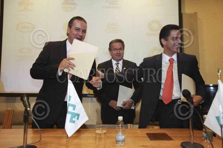 MÉXICO, D.F., 26MARZO2012.- Gerardo Gutiérrez Candiani, presidente del Consejo Conejo Coordinador Empresarial, Roberto Espinoza, presidente de la COPARMEX, Fernando Solís Soberón, presidente de la Asociación Mexicana de Instituciones de Seguros (AMIS). Durante el Informe en el que los integrantes de este consejo darán a los candidatos en reuniones con cada uno, titulado "Agenda única para desarrollo de México." FOTO: JUAN PABLO ZAMORA /CUARTOSCURO.COM