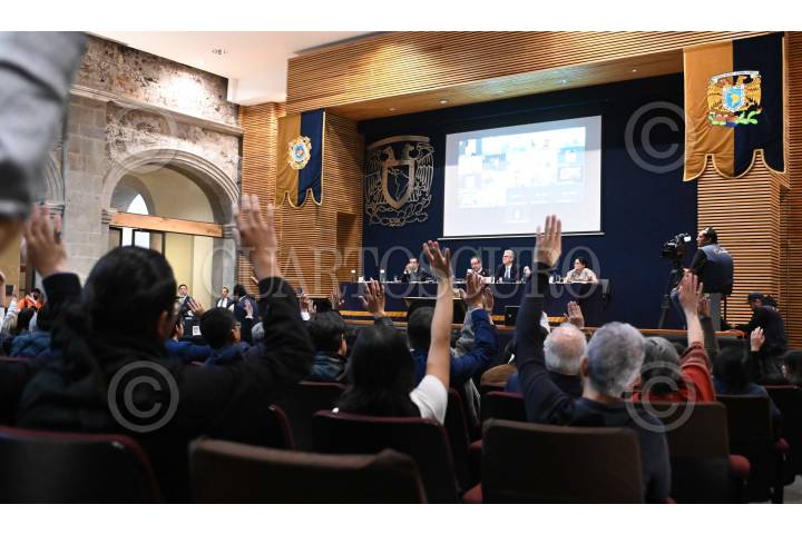 CIUDAD DE MÉXICO, 30ENERO2025.- El pleno del Consejo Universitario de la UNAM aprobó su presupuesto para 2025, que asciende a 58 mil 085 millones de pesos. De ellos, 52 mil 183 millones son aportaciones del gobierno federal, complementados con cinco mil 902 millones de pesos de ingresos propios, que la institución estima obtener. A Docencia serán aplicados 36 mil 059 millones de pesos, correspondientes al 62.08 por ciento del presupuesto total. De esos recursos, se asignan a educación superior -programas de licenciatura y posgrado- 28 mil 151 millones de pesos; en tanto que al bachillerato van dedicados siete mil 908 millones de pesos. Para Investigación se otorgarán 15 mil 034 millones de pesos, equivalentes al 25.88 por ciento del presupuesto total. En tanto que a Extensión Universitaria corresponderán cuatro mil 310 millones de pesos, es decir, 7.42 por ciento. FOTO: UNAM/CUARTOSCURO.COM