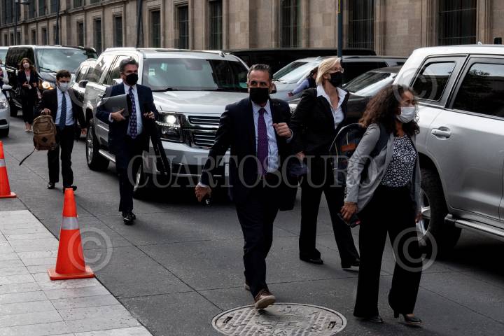 Integrantes de la delegación del gobierno de Estados Unidos arriban a la Palacio Nacional.