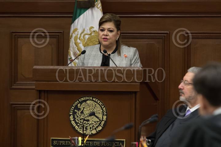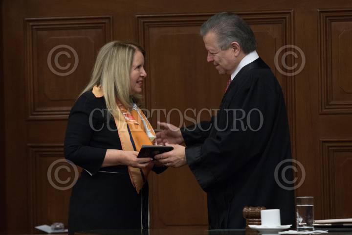 CIUDAD DE MÉXICO, 25NOVIEMBRE2019.- Loretta Ortíz Ahlf y Verónica de Gyvés (imagen) fueron recibidas en sesión solemne en la Suprema Corte de Justicia de la Nación como nuevas integrantes del Consejo de la Judicatura Federal, el presidente de la SCJN, Arturo Zaldívar, felicitó a las nuevas consejeras de la CJF. FOTO: MOISÉS PABLO /CUARTOSCURO.COM
