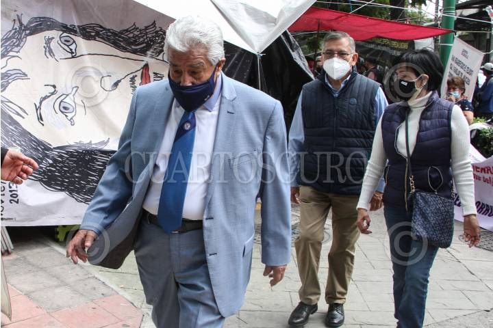 El abogado de los padres de los normalistas desaparecidos de Ayotzinapa, Vidulfo Rosales, participa en el mitin.