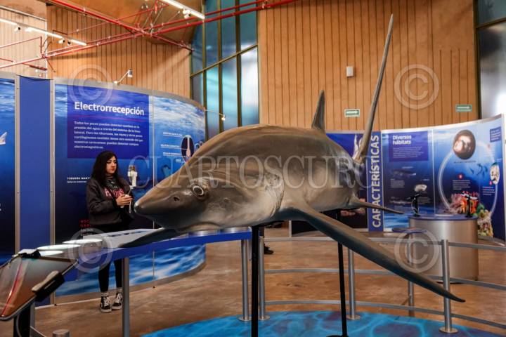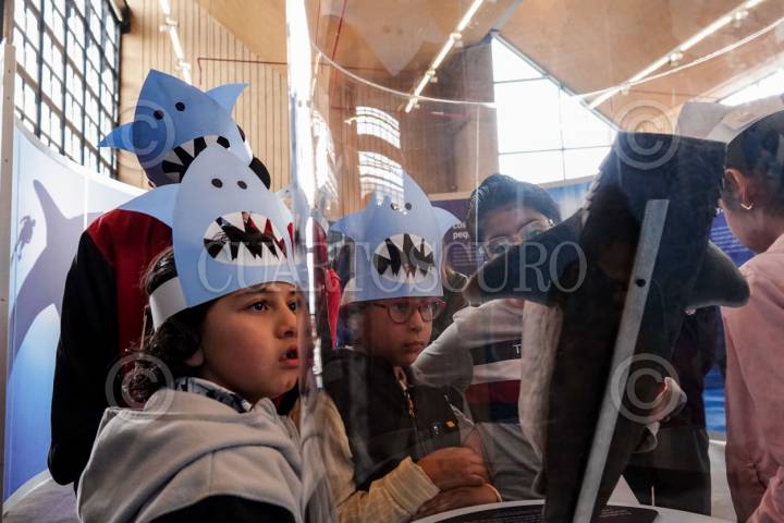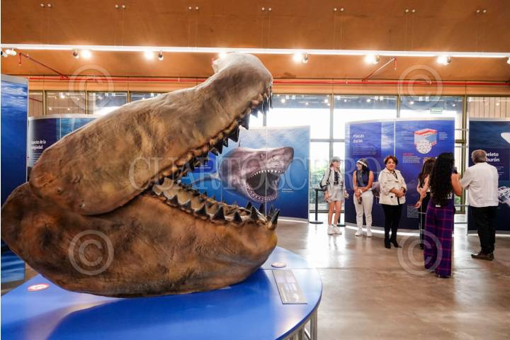 CIUDAD DE MÉXICO, 13JUNIO2025.- Aspectos del recorrido a medios durante la inauguración de la exposición Tiburones (muestra en colaboración del Museo de Historia Natural de Nueva York y la Fundación Coppel, así como el museo Yancuic) en las inmediaciones de dicho recinto en la alcaldía Iztapalapa, que podrá ser visitado hasta octubre del presente año. FOTO: GALO CAÑAS/CUARTOSCURO.COM