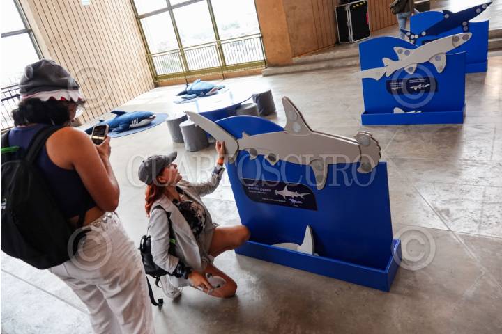 CIUDAD DE MÉXICO, 13JUNIO2025.- Una fotógrafa retrata aspectos durante el recorrido a medios durante la inauguración de la exposición Tiburones (muestra en colaboración del Museo de Historia Natural de Nueva York y la Fundación Coppel, así como el museo Yancuic) en las inmediaciones de dicho recinto en la alcaldía Iztapalapa, que podrá ser visitado hasta octubre del presente año. FOTO: GALO CAÑAS/CUARTOSCURO.COM