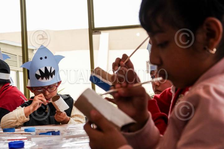 CIUDAD DE MÉXICO, 13JUNIO2025.- Un niño realiza su propio tiburón durante la inauguración de la exposición Tiburones (muestra en colaboración del Museo de Historia Natural de Nueva York y la Fundación Coppel, así como el museo Yancuic) en las inmediaciones de dicho recinto en la alcaldía Iztapalapa, que podrá ser visitado hasta octubre del presente año. FOTO: GALO CAÑAS/CUARTOSCURO.COM