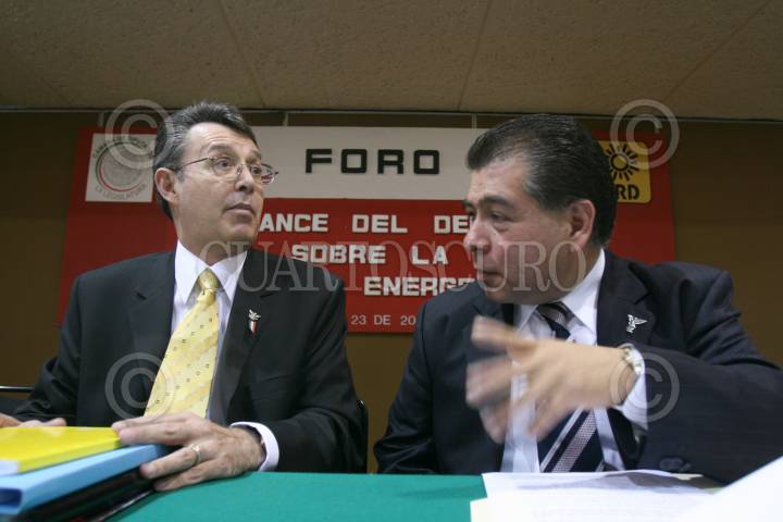 MÉXICO, D.F., 23JULIO2008.- Alfonso Suárez del Real, diputado perredista y Mario Di Constanzo, Secretario de Hacienda del Gobierno Legitimo, participaron en el foro "Balance del Debate sobre la Reforma Energética" que se realizó en la Cámara de Diputados. FOTO: MOISÉS PABLO/CUARTOSCURO.COM