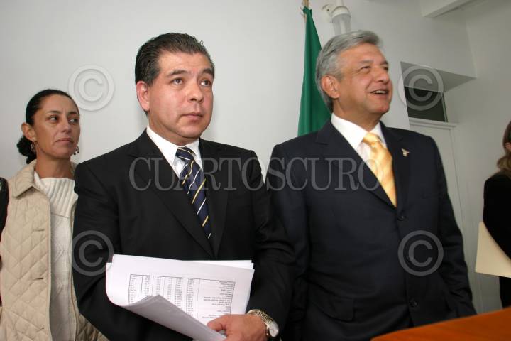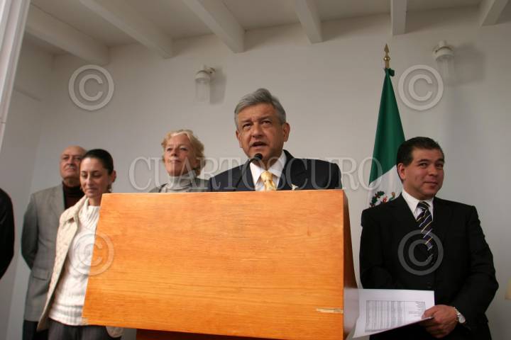 MÉXICO, D.F, 04DICIEMBRE2006.- Andrés Manuel López Obrador, ex-candidato a la presidencia, ofreció una conferencia de prensa en sus oficinas de la col. Roma, para anunciar una inciativa en materia de salud. Lo acompañaron integrantes de su gabinete como Marío De Constanzo Secretario de Hacienda. FOTO: MOISÉS PABLO/CUARTOSCURO.COM