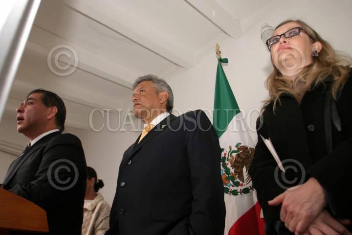 MÉXICO, D.F, 04DICIEMBRE2006.- Andrés Manuel López Obrador, ex-candidato a la presidencia, ofreció una conferencia de prensa en sus oficinas de la col. Roma, para anunciar una inciativa en materia de salud. Lo acompañaron integrantes de su gabinete como Marío De Constanzo y Laura Itzel Castillo. FOTO: MOISÉS PABLO/CUARTOSCURO.COM