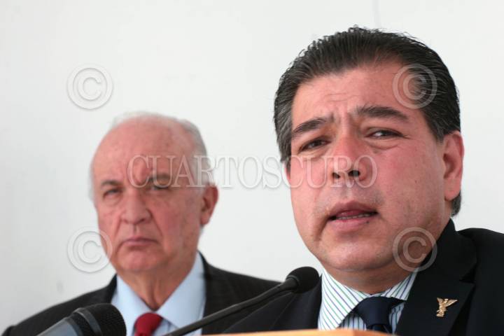 MÉXICO,D,F.,14 NOVIEMBRE2007.- Mario Di Constanzo Secretario de hacienda del gobierno Legítimo acompañado por Octavio Rondo secretario para la honestidad y austeridad de la República en conferencia de prensa en donde hablaron sobre la irrupción de perredistas a la catedral ademas de tratar temas como la venta del petróleo. FOTO: SASHENKA GUTIERREZ/CUARTOSCURO.COM