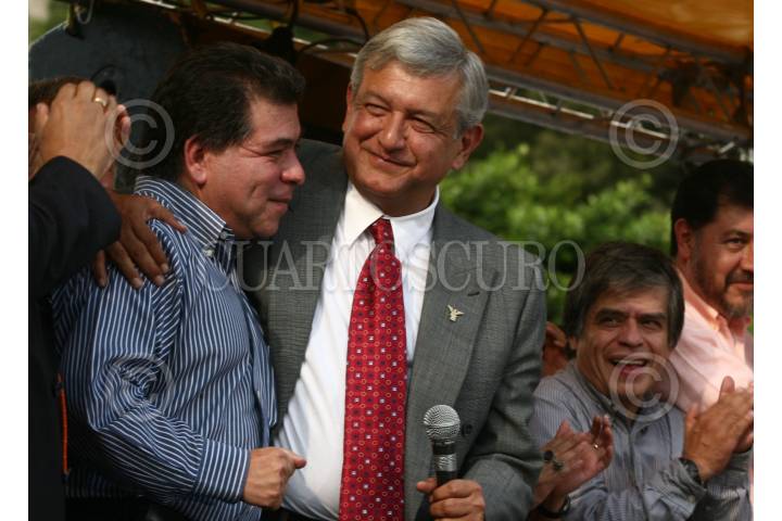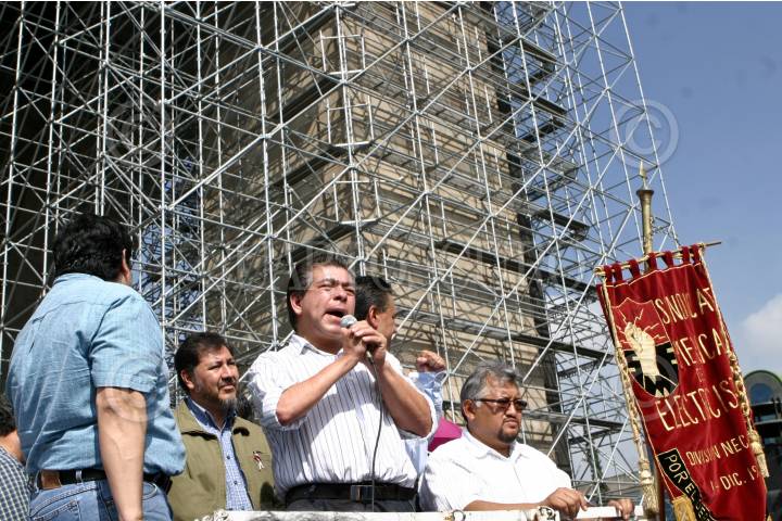 MÉXICO, D.F., 11OCTUBRE2009.- El diputado federal por el PT Mario Di Constanzo durante un mitin en la explanada del Monumento a la Revolución para protestar en contra de la liquidación de la Compañía de Luz y Fuerza del Centro (LYFC) y la ocupación de sus instalaciones por la Policía Federal. FOTO: RODOLFO ANGULO/CUARTOSCURO.COM